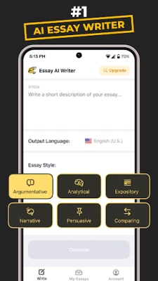 Introducing our innovative essay writing AI tool for students, professionals, and anyone in need of high-quality, well-written essays. This app is designed to make the essay writing process easier, faster, and more efficient than ever before.