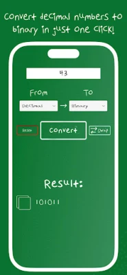It works in all ways: -Binary to Decimal. -Decimal to Binary. -Octal to Binary. -Decimal to Hexadecimal.