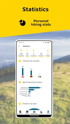 Collect unforgettable moments with your digital tour book! Record your hikes and outdoor activities in your personal summit log or tour diary. Whether you’re high up on a mountain or walking through gentle landscapes, you can record your activities at a total of 600,000 destinations worldwide using the hiking app, while collecting hiking badges at the same time.
